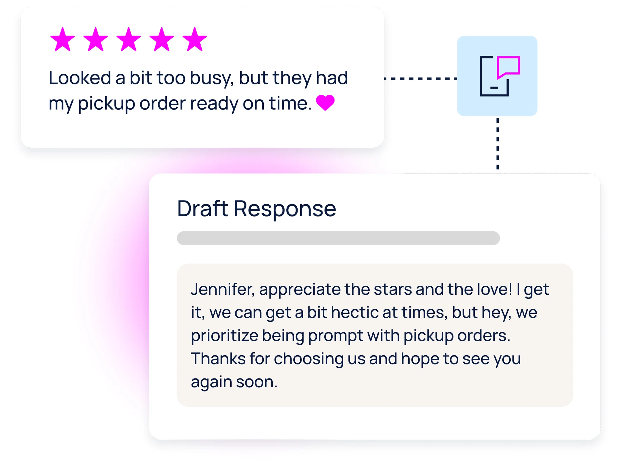 Respond to reviews faster with generative AI trained on your brand tone. Use the data to better understand the emotional drivers of loyalty, so you can double down on what works.