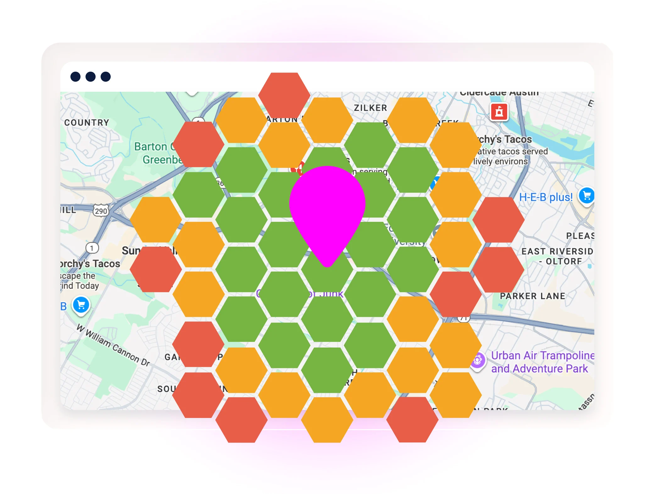 Drill down into a single location’s performance and see exactly where it shows up in search results. Identify areas where you rank in the top three and where you fall behind.
