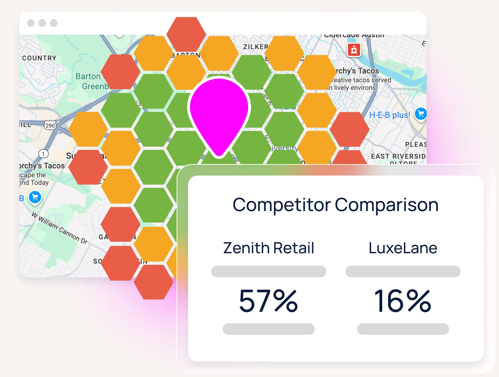 Layer competitor results alongside your own to see who ranks where. Pinpoint overlaps, uncover weaknesses, and capture market share in local search.