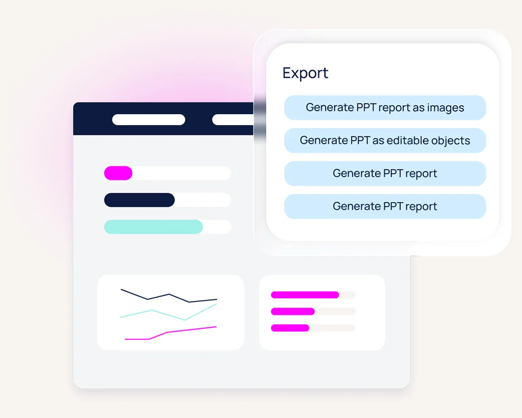Don’t just build reports. Build momentum. Easily transform survey data into infographics and dashboards that drive action or detailed reports, including native PowerPoint. Research agents accelerate time to insight by 50%.