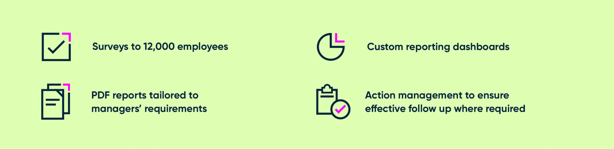 We are incredibly proud of how well the program has embedded into the business. It’s a valued tool that has really made a difference for both leaders and colleagues. Faster reporting has meant that results are more reflective of the current mood which has allowed us to really understand our business ‘in the moment’ and put actions in place which feel timely and relevant. The action planning process ensures that everyone has visibility of results and are acting with their colleagues to improve our workplace for the better.